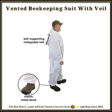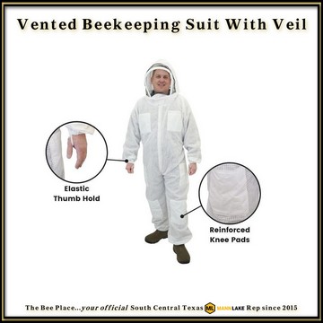 This ventilated full bee suit provides complete upper and lower body protection for hive work.
